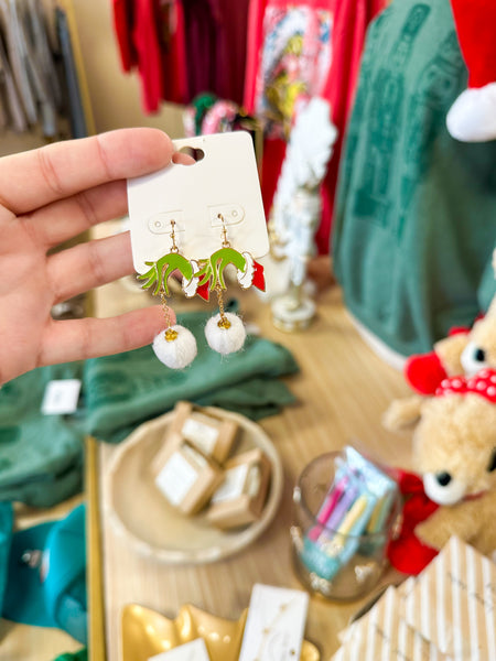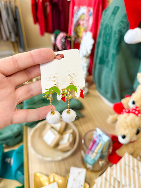 Green Man Hand & Furry Drop Earrings