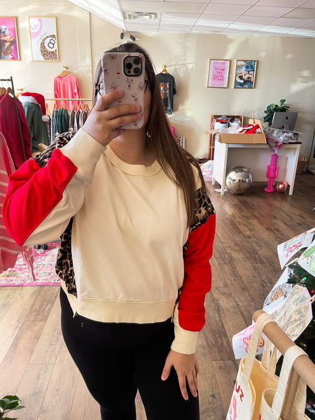 Leopard Red Colorblock Pullover